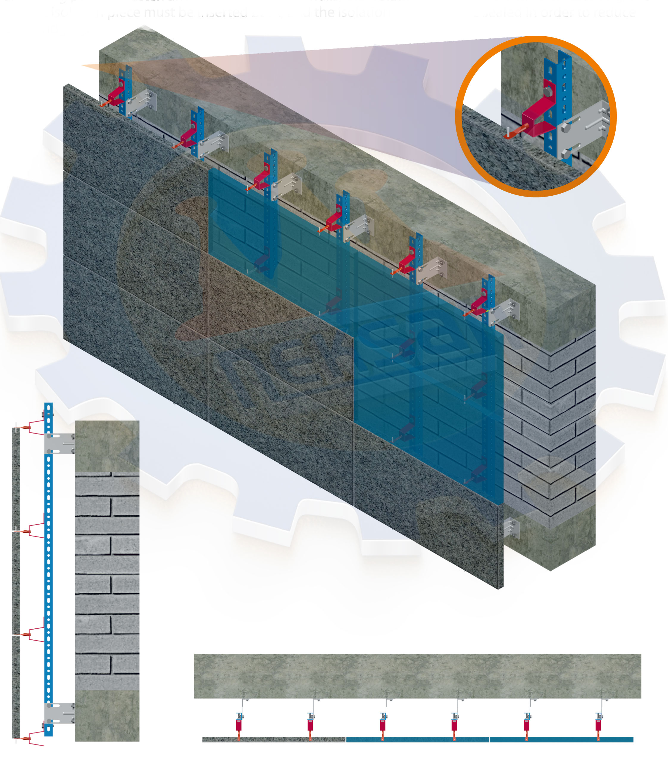Taşıyıcı kirişlere ankraj ile desteklenen kanal yapısına sabitleme. Her birinde yalıtım kesilir
